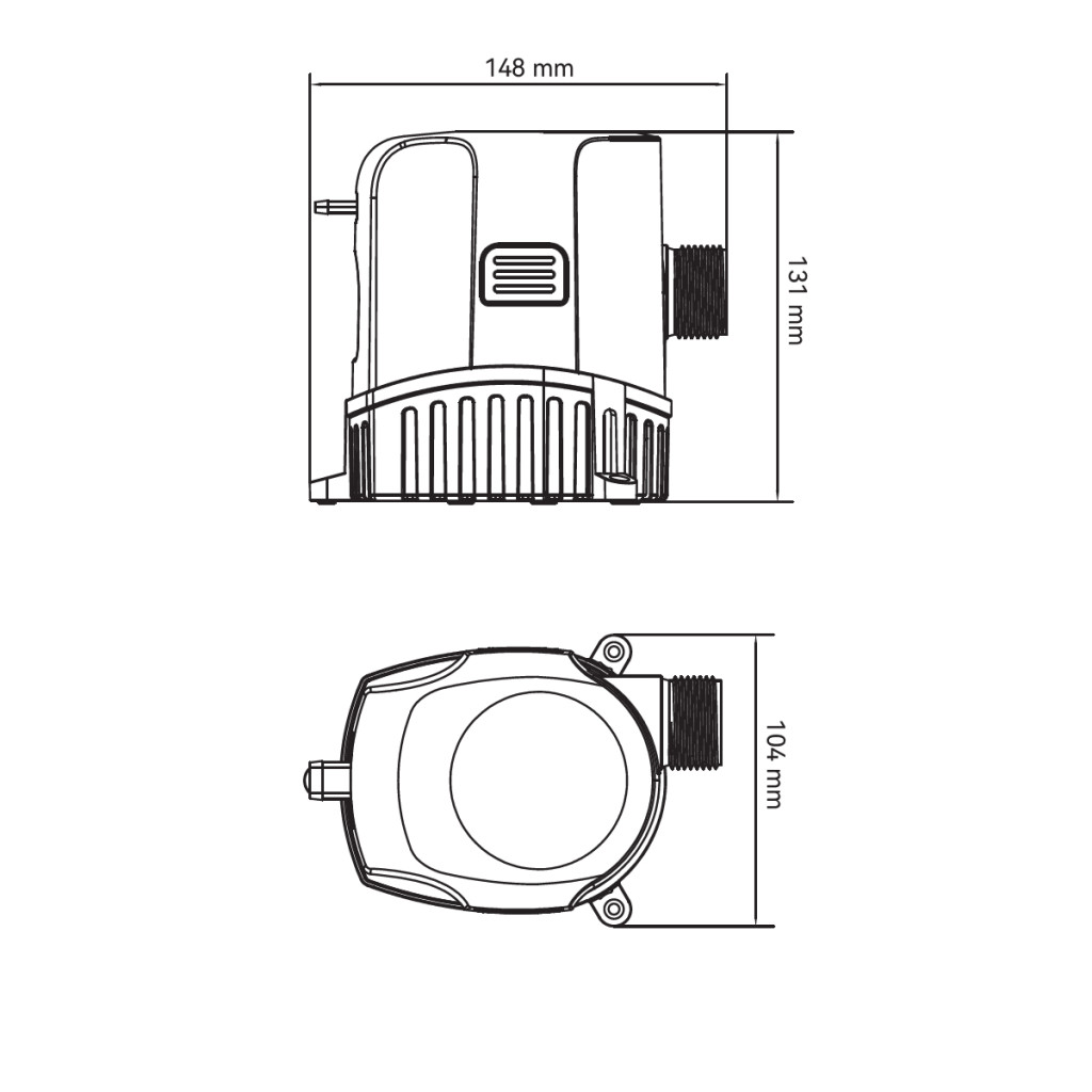 [table]Tápfeszültség: 24 V|Max. kapacitás: 125 l/perc = 7500 l/óra|Max. áramfelvétel: 4,5 A|Max. emelési magasság: 4 m|Kilépő csőcsatlakozás: 29 mm (1"1/8)|Méretek: 148 x 131 x 104 mm|Súly: 0,9 kg[/table]