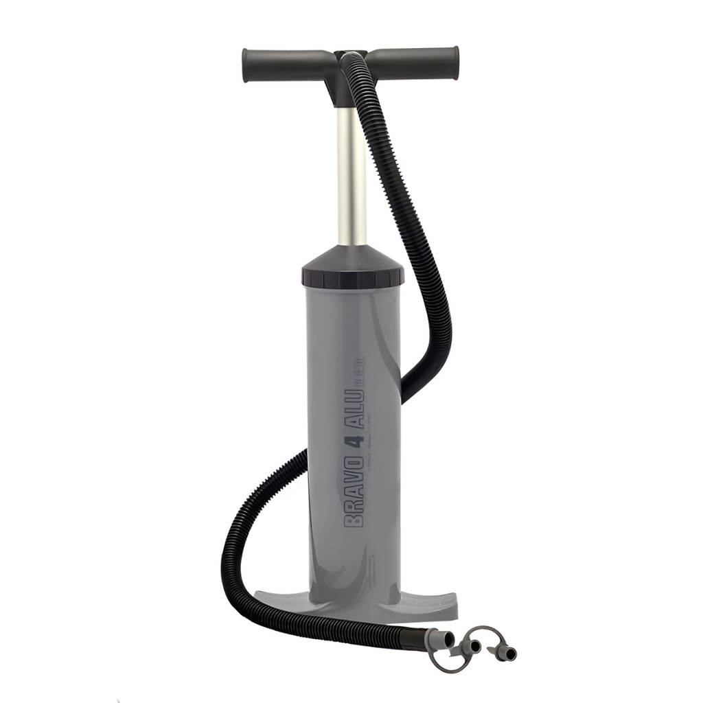 A BRAVO ALU R.E.D. pumpa felfújásra és leeresztésre egyaránt használható, ami megkönnyíti a felszerelés összepakolását és tárolását. A kb. 2 x 2000–4000 cc kapacitásnak és a maximum 0,8 bar (kb. 11,6 psi) nyomásnak köszönhetően gyorsan eléri a szükséges nyomást a legtöbb vízi és outdoor eszközben. A csomag többféle adaptert tartalmaz, így különböző szeleptípusokkal kompatibilis.