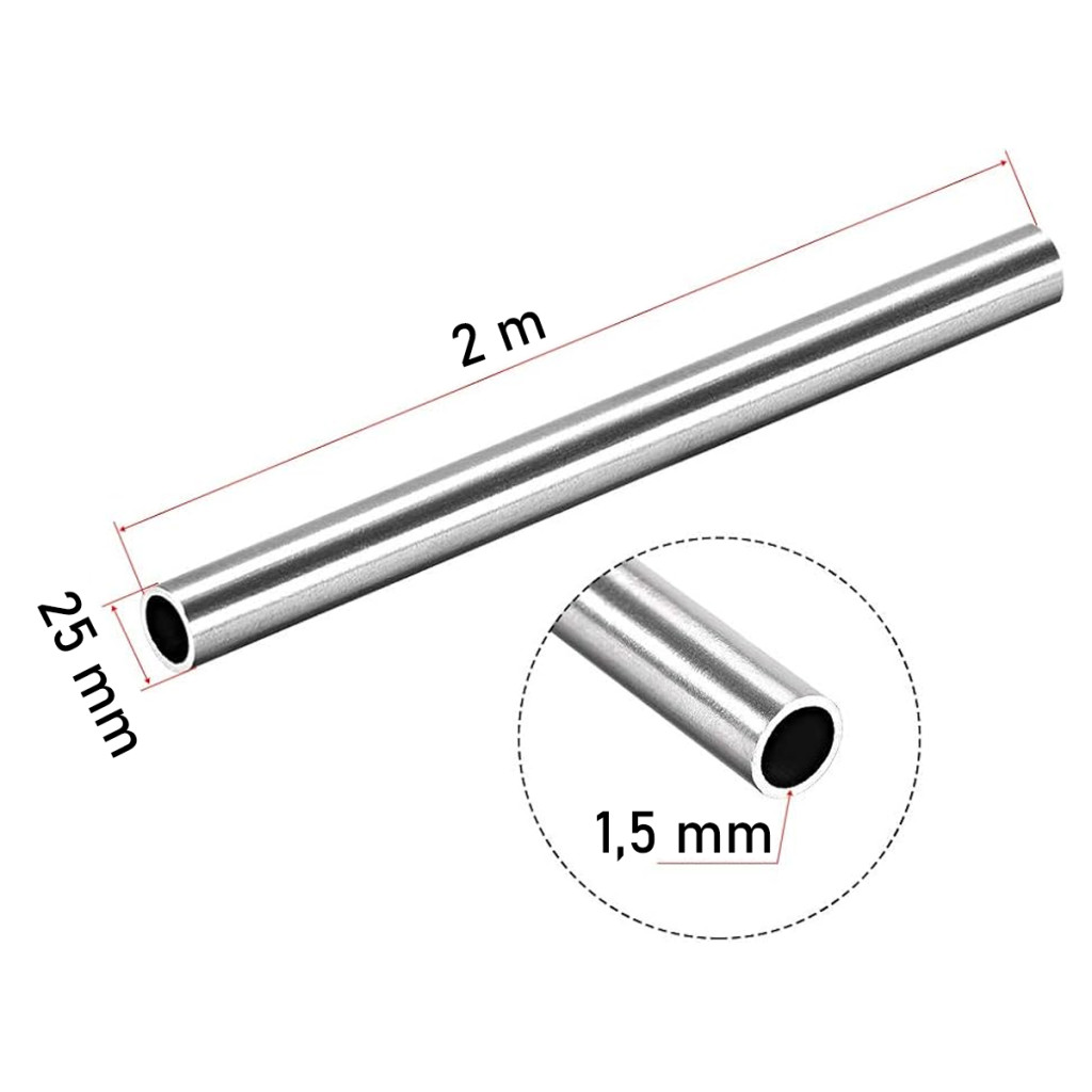 [table]Hosszúság: 2 m|Átmérő: 25 mm|Falvastagság: 1,5 mm|Anyag: 304 rozsdamentes acél[/table]